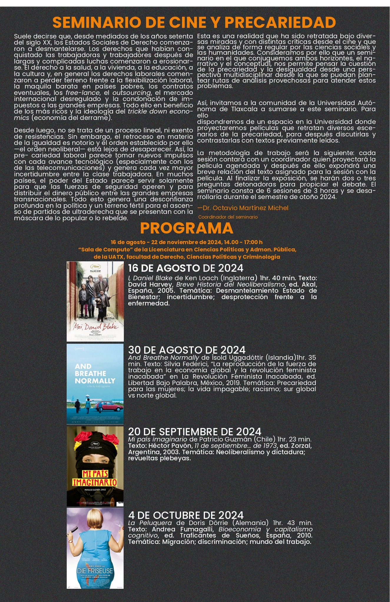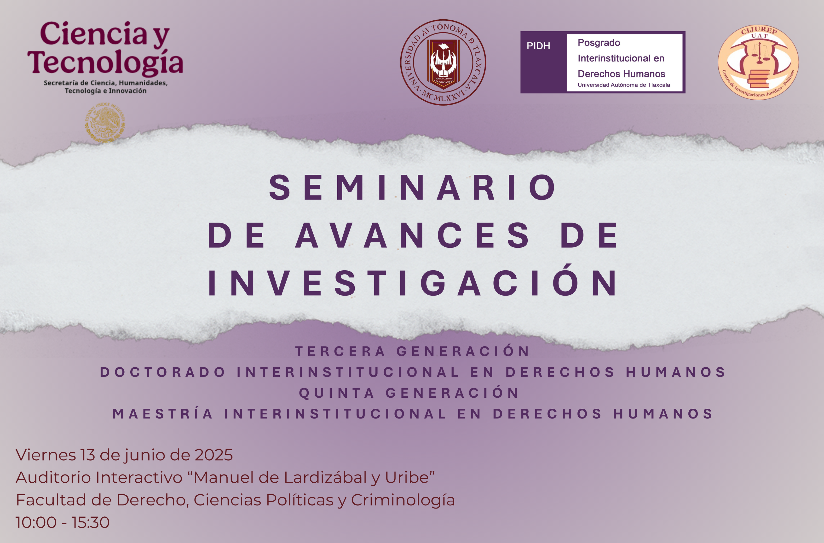 Lugar: "Sala de Titulación C-5" de la Facultad de Filosofía y Letras de la UATx.